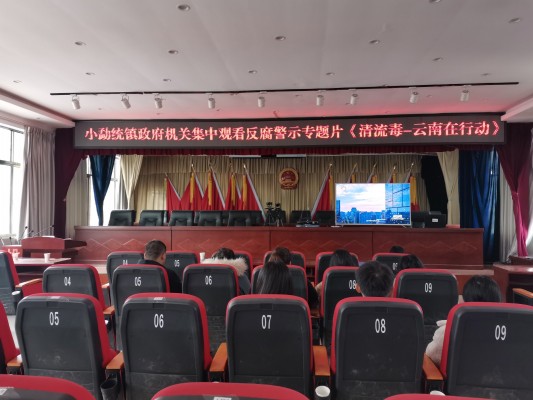 小勐统镇组织干部职工集中观看《清流毒—云南在行动》第二集。