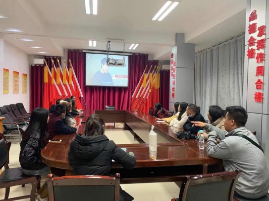 永康镇以集中观看与自行观看相结合的方式,由镇党政办公室通知至各村、各站所组织全镇干部职工观看《清流毒—云南在行动》第二集。图为永康镇组织干部职工在镇会议室集中观看。