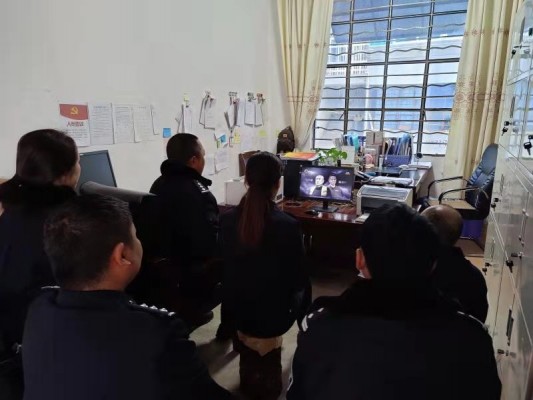 基层公安民警端坐在电脑前,认真观看《清流毒—云南在行动》第二集。