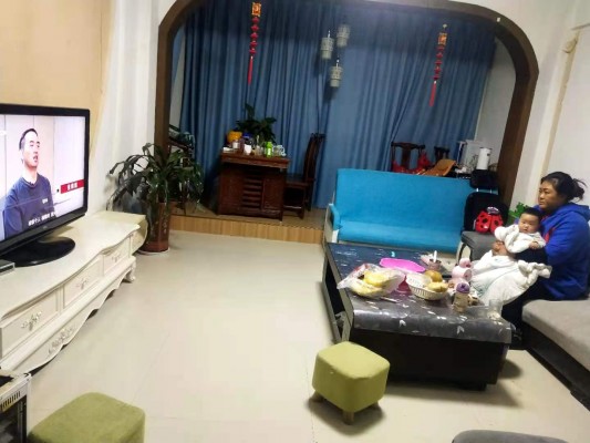 县纪委监委专职常委、监委委员杨丽娟产假未满,在家中抱着4个月余的孩子,认真观看《清流毒—云南在行动》第二集。