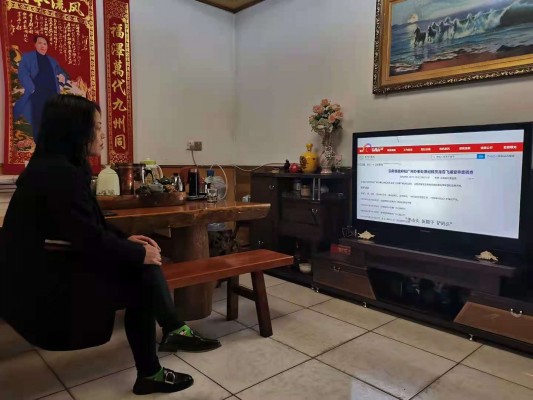 县交通运输局干部在家中自行观看《清流毒—云南在行动》第二集。