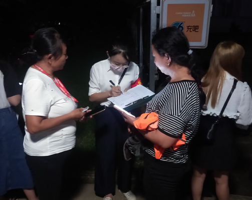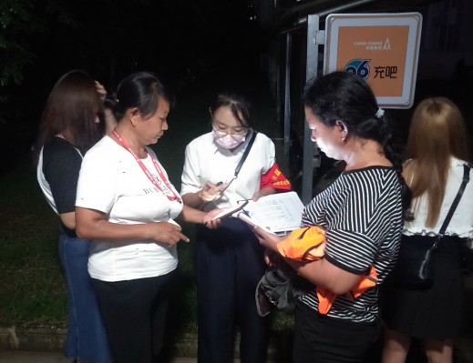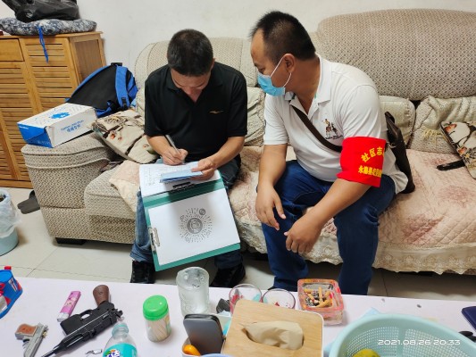 还有小分队卡准上、下班时间、住户晚归时间在单元楼梯口设立登记点,加快排查进度。(茶辕瑾 摄)