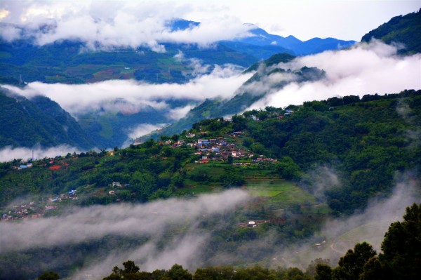 大雨过后,倚在半山腰的氤氲慢慢地散去,错落有致的村寨和绿意葱葱的山林绘就了一幅和谐生态画卷。(穆王成 摄)