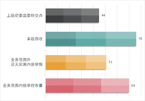 1-10月,全县纪检监察机关共接收信访举报120件,其中上级纪委监委转交办44件,本级自收76件。纪检监察业务范围内检举控告69件,业务范围外及无实质内容举报51件。在受理的69件检举控告中,来信15件、来访8件、来电14件、网络举报32件,初次举报57件、重复举报12件。