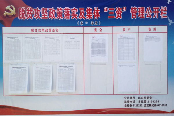 截止目前,92个行政村(居)全面完成脱贫攻坚政策落实及集体“三资”管理公开监督平台数据上传和实地公开工作,共涉及1098个村(居)民小组,公示脱贫攻坚政策落实资金2.98 亿元10.77万人,集体资金1087万元。