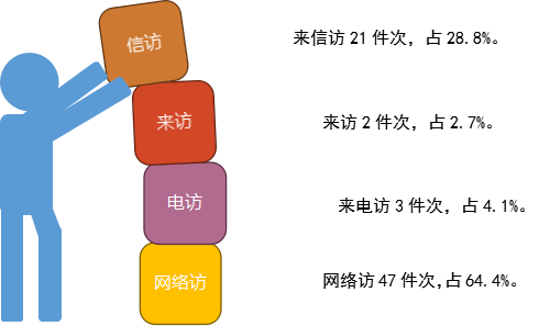 上级转办29件,占39.7 %,本级受理44件,占60.3%。