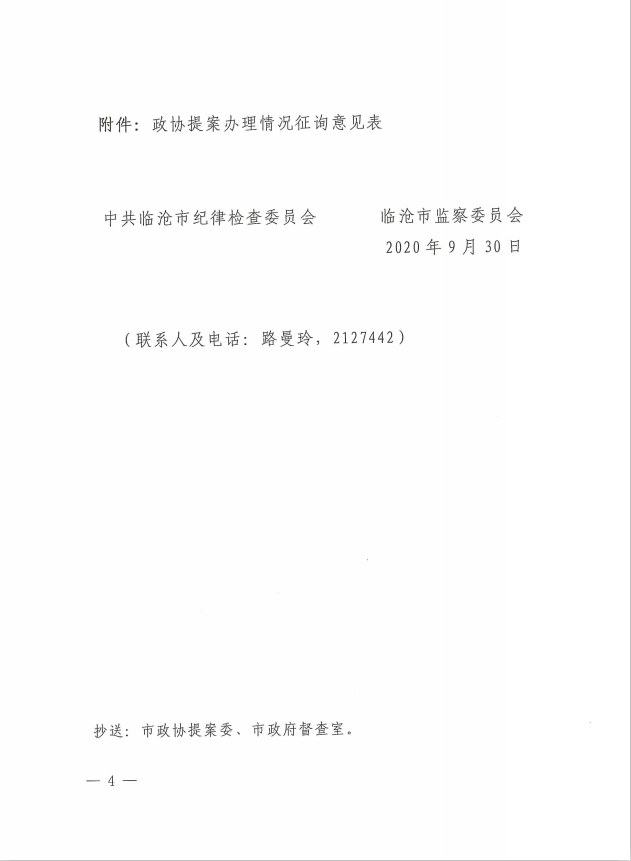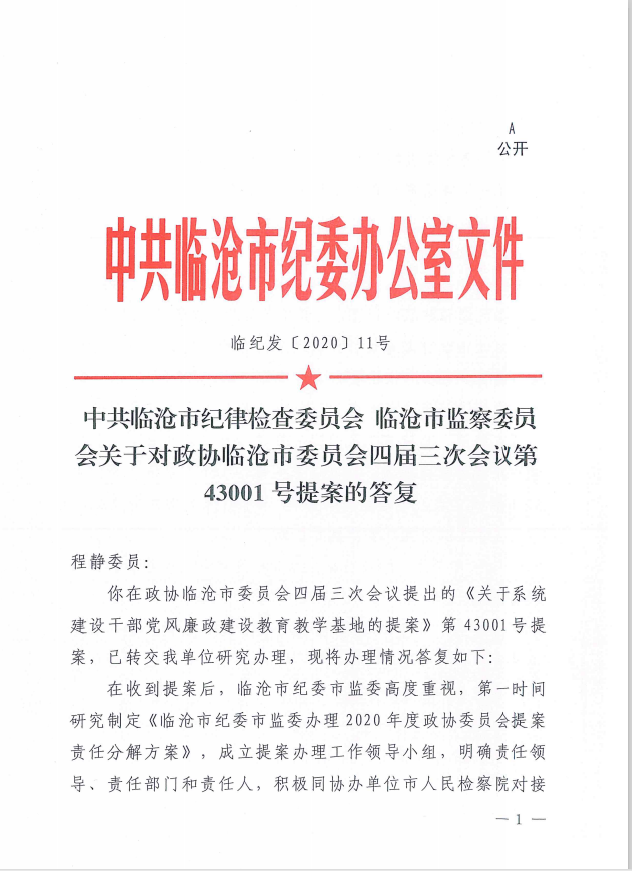 中共临沧市纪委临沧市监委关于对政协临沧市委员会四届三次会议第43001号提案的答复