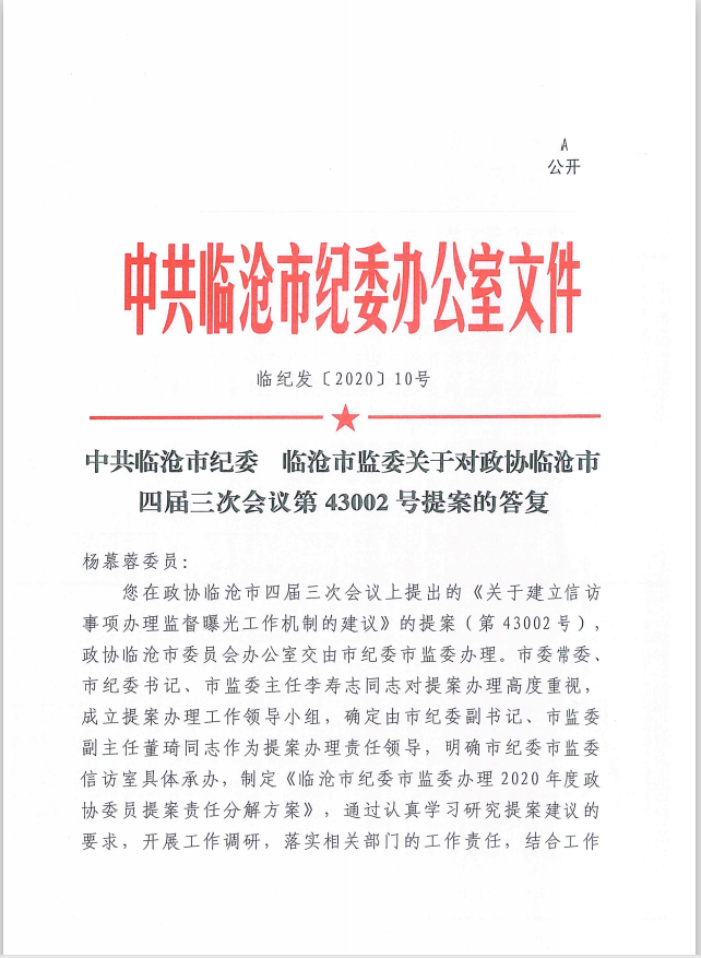 中共临沧市纪委临沧市监委关于对政协临沧市委员会四届三次会议第43002号提案的答复