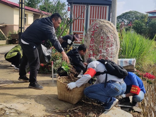 纪检监察干部们带上锄头和扫帚带头开展提升人居环境行动,清扫村组道路、清理路边垃圾、杂草。