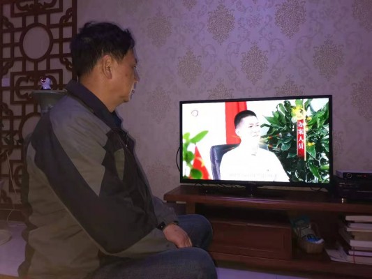 一名县委巡察干部在家中专心观看警示教育片。(周天祥 摄)