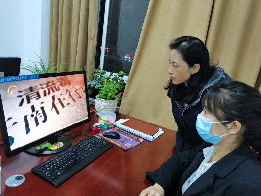 县纪委监委2名干部在加班时一起再次观看警示专题片。