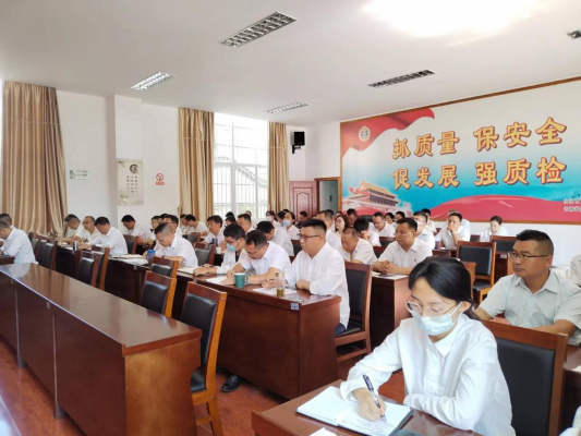 中心党组书记、主任出席会议并讲话,市纪委市监委派驻市市场监管局纪检监察组组长胡顺祥主持会议并讲话,市质检中心全体干部职工参加会议。