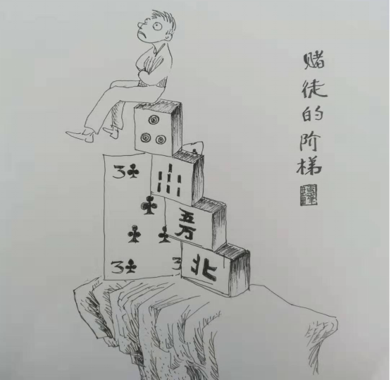 赌博是输了想翻本,赢了想得陇望蜀,使人越陷越深的沼泽,赌徒的阶梯总是在摇摇欲坠。党员领导干部要做遵纪守法的表率,珍爱生活,好好工作,远离赌博!(李雪峰绘图,杨成菊文字)