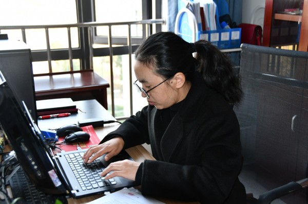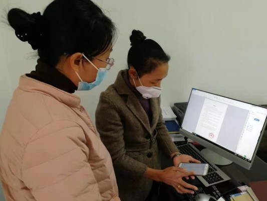 县纪委县监委宣传部干部正在修改“廉洁双江”公众号上需要用到的信息。