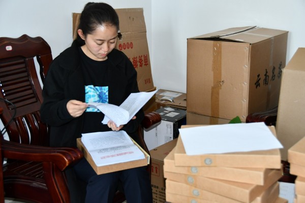 县纪委县监委组织部干部正在整理民主生活会材料。