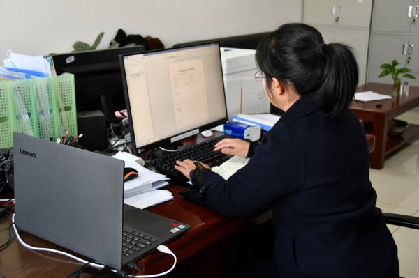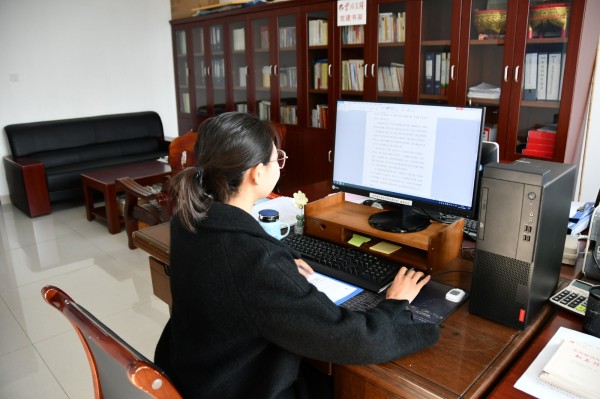 县纪委县监委第四纪检监察室干部正在拟写案件初核报告。