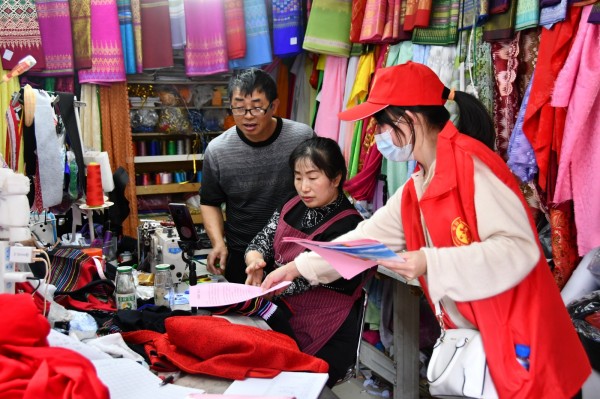县纪委县监委志愿服务队走进大街小巷向群众发放“家庭助廉”倡议书。