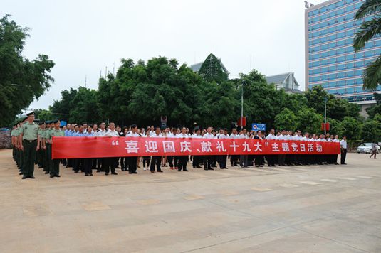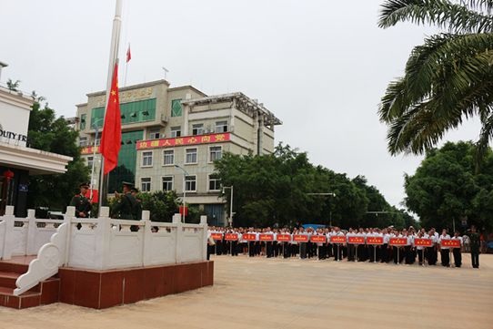 党的十九大即将召开之际,镇康县组织党员干部在南伞口岸开展“国门升旗”仪式。