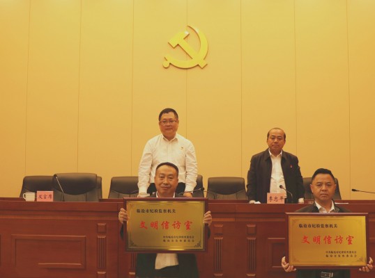 会上为获得2020年度临沧市纪检监察机关“文明信访室”称号的永德县纪委监委信访室、凤庆县纪委监委信访室颁发了“文明信访室”牌匾;永德县、凤庆县、临翔区、双江自治县纪委监委分别就如何做好2021年度信访举报工作作了交流发言。