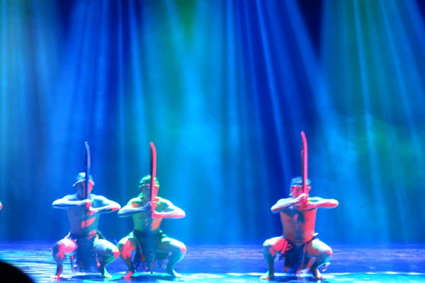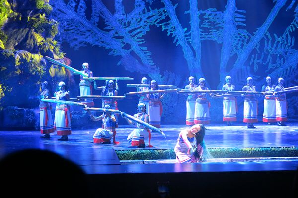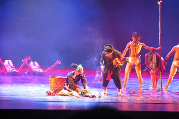 通过佤族舞蹈,展示了阿佤人民千百年来热爱生活、向往美好、与大自然抗争的民族精神。崖画、刀耕火种等舞蹈充分展现出佤乡神奇美丽的自然风情以及深邃厚重的人文风情;拉木鼓、刀舞、木鼓甩发舞等构成的舞蹈,展现了佤族崇善自然、感恩大自然的高尚品格;“接新水”“薅秧歌”“月亮升起来”等舞蹈,展现了阿佤人民用劳动换取富足、劳动是生命延续的技能的场面和感恩自然的高尚品格。