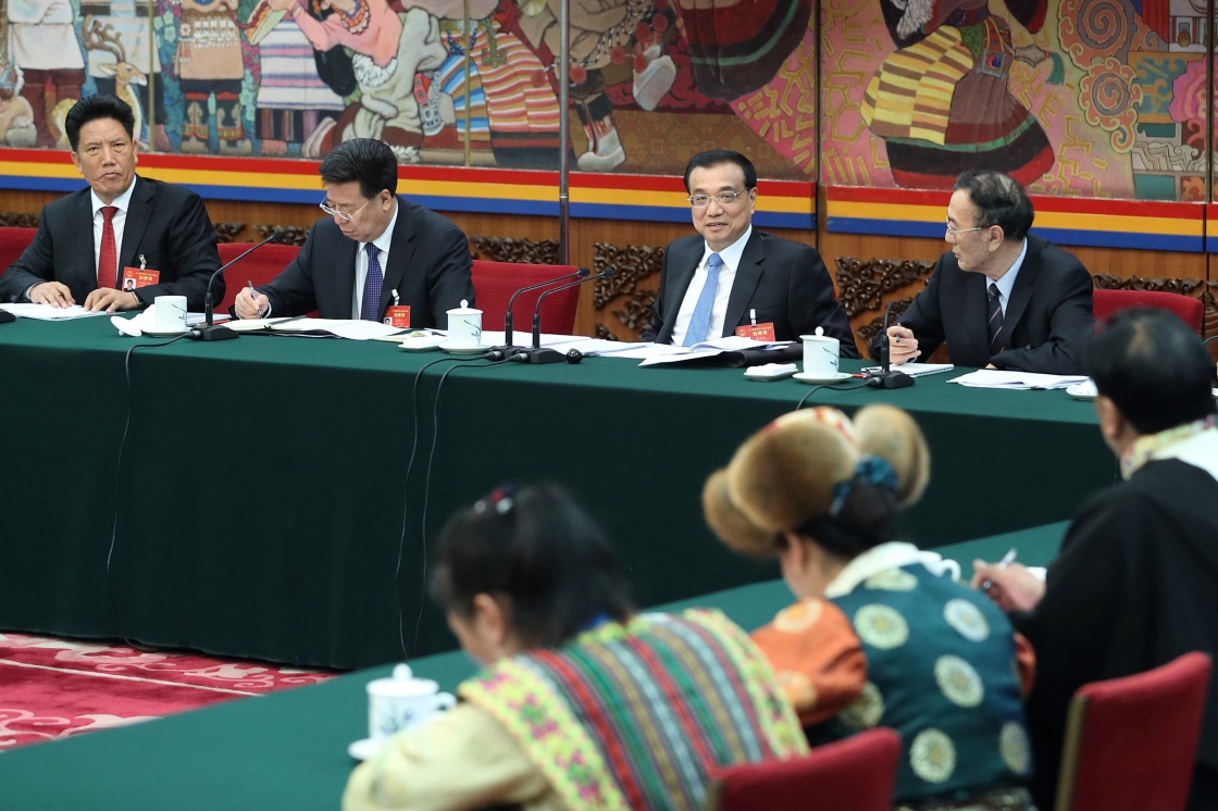 3月7日,中共中央政治局常委、国务院总理李克强参加十二届全国人大五次会议西藏代表团的审议。新华社记者 王晔 摄