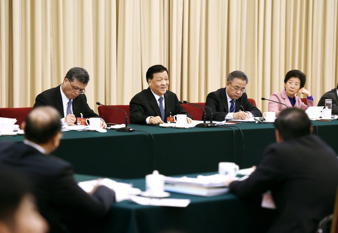 3月7日,中共中央政治局常委、中央书记处书记刘云山参加十二届全国人大五次会议广东代表团的审议。新华社记者 燕雁 摄