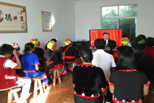 镇康县蚌孔村傈僳族群众认真收看