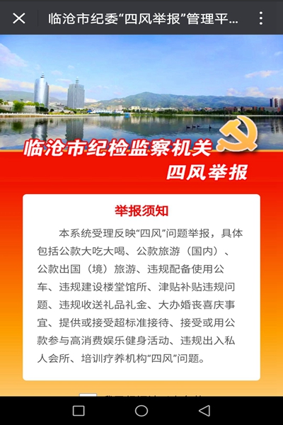 为推进全面从严治党向扶贫领域纵深发展、向基层延伸,不断强化脱贫攻坚纪律作风保障。临沧市纪检监察系统充分运用新科技、新媒体,于2月1日在全省率先开通了市级纪委、8县(区)纪委共9个官方微信公众号的手机“一键举报”功能,为各级纪检监察机关更好地进行阳光监督插上了“科技的翅膀”。