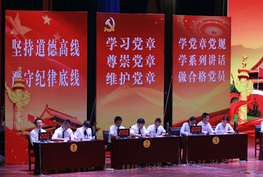 5月27日晚,由临沧市纪委市监察局主办,市委组织部、市委宣传部、临沧传媒集团协办的“临沧市2016年党章党规学习教育知识竞赛决赛”在临沧亚洲微电影院举行。市委、市人大常委会、市政府、市政协领导以及600多名党员代表出席现场观看比赛,临沧电视台对比赛实况进行了转播。
