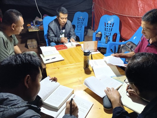 在张家水井执勤点开展县纪委监委理论学习中心组2021年第四次集中学习。