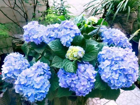 一大朵、一大朵的蓝色绣球花,你挨着我,我挤着你,层层叠叠的花瓣在风中跳着优雅的华尔兹。