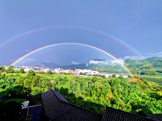 断虹霁雨,净秋空,山染修眉新绿。(李正丽 摄)