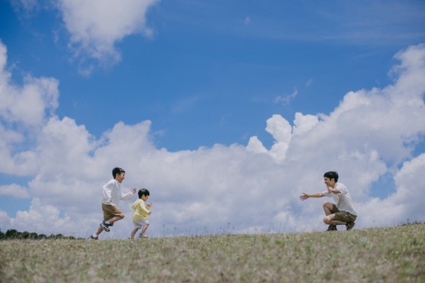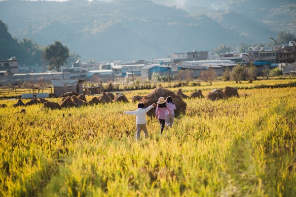 秋高气爽,父亲带着孩子们到野外放松心情,亲身体会大自然的独特魅力。(李盛德 摄)