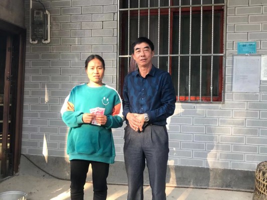 派驻县教育体育局干部李文俊为挂钩户送去慰问金,引导农户讲究卫生,美化庭院,提高生活品质。