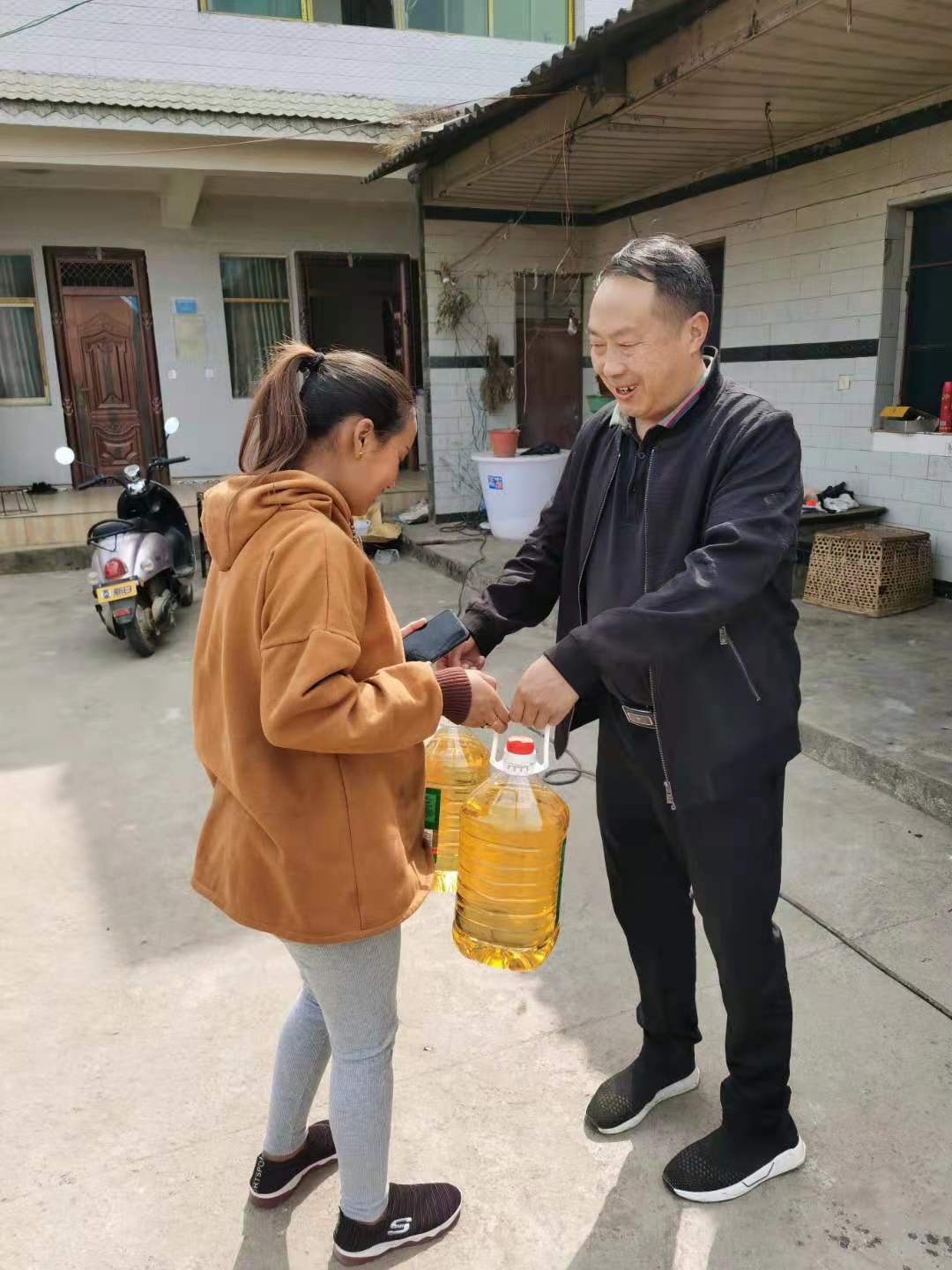 县纪委副书记、县监委副主任何跃龙为挂钩户送去慰问品,勉励挂钩户要继续发挥主观能动性发展生产,使生活蒸蒸日上。