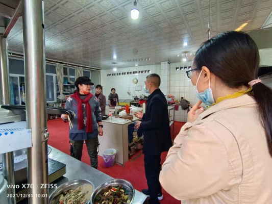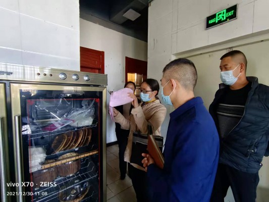 监督检查组检查单位食堂是否存有烟酒、酒具,并对公务接待提出相关要求。(杨桃 摄)