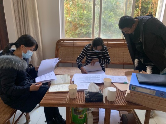 监督检查组查看疫情防控“一网两单零报告”等痕迹资料。(李建欢 摄)