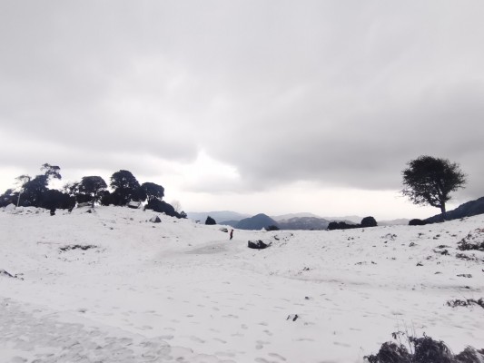 一团团、一簇簇的雪飘落下来,广袤的山川盖上了洁白无垠的“地毯”,郁郁葱葱的林带,一改往日翠绿的装束,树尖上点着一髻儿“白花”。