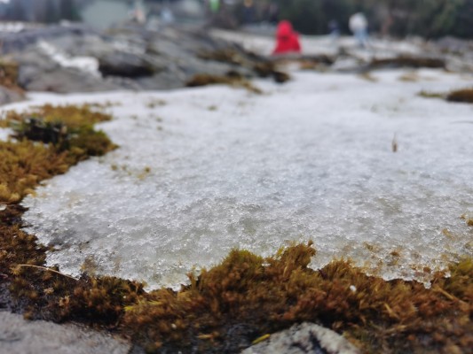 瑞雪润万物,晶莹透亮的雪花在青苔上显得更加冰清玉洁、一尘不染。(朱绍兰)