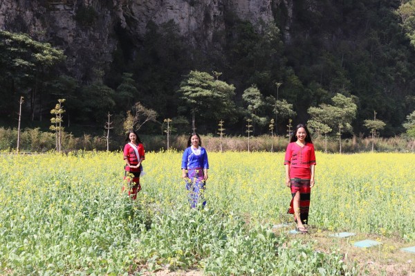 油菜花海里的阿佤姑娘,笑靥如花,和金色的油菜花融为一体,鲜艳迷人,如梦如幻。