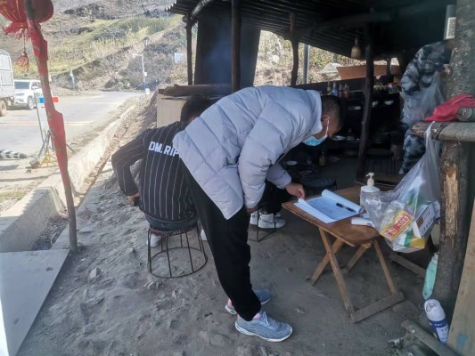 大兴乡纪委到大兴乡大美路卡点查看卡点过往车辆登记、扫两码执行及值班人员在岗等情况。