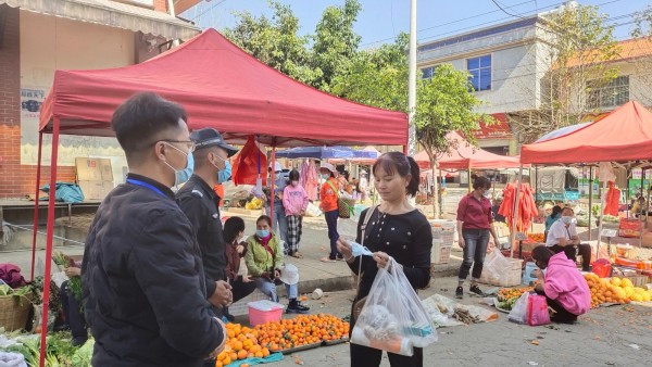勐永镇纪委成立口罩纠察队对勐永镇街道群众佩戴口罩情况进行监督检查,对未佩戴口罩人员现场督促立行立改。