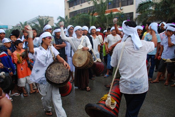 泼水节是傣族最隆重的节日,也是双江少数民族节日中影响面大,参加人数最多的节日。泼水节是傣历新年,一般在“清明”后十天,相当于公历的四月中旬,具体的日子要由熟悉傣历的高僧推算。节前一天傣语叫“过必高”,意为辞岁,相当于汉族的除夕,节日一般持续3至7天。节前,傣族家家做米花(“烤崩”)、炸粑粑、打扫庭院、缝制新衣、置办酒肉、邀请客人。节日期间主要有堆沙、赛鼓、遛包、放火花(烟花)、串寨等活动。节日第一天傣语叫“比磨善罕”,人们把这一天视为最美好,最吉祥的日子。节日清晨,傣族男女老少就穿上节日盛装,挑着清水,先到佛寺浴佛,然后就开始互相泼水,互祝吉祥、幸福、健康。人们一边翩翩起舞,一边呼喊“水!水!水!”,鼓锣之声响彻云霄,祝福的水花到处飞溅,场面十分壮观。(注:本文图片均为2021年前拍摄。)( 江宏峰)