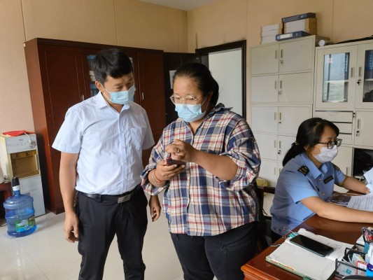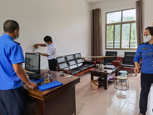 检查组实地测量办公用房面积。
