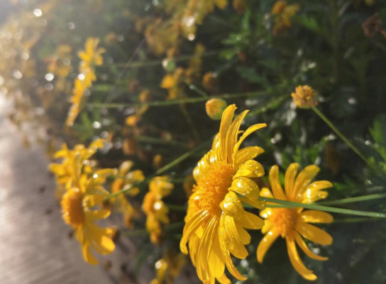 在秋天雾蒙蒙的早上,还带着昨夜雨露的小菊花依然绽放着,也是秋日里美丽的风景。