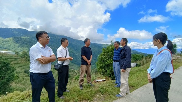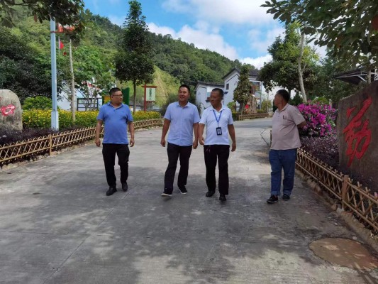 图为监督检查组查看茶房乡村头村生活污水处理情况