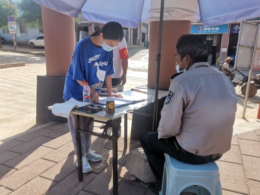 勐撒农场社区纪工委到辖区卫生院、信用社、超市和药店检查疫情防控相关工作。