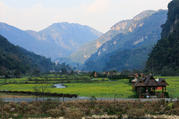 青山翠绿,水洁风清。惊蛰时节,沧源县班鸽村的油菜花盛开,金黄色的花镶嵌在绿水青山之间,犹如春天寄来的一张明信片,微风拂过,大片色彩缤纷的花儿在春风中摇曳生姿,成了春日里最浪漫的诗篇。(阳益民 李玲 摄)