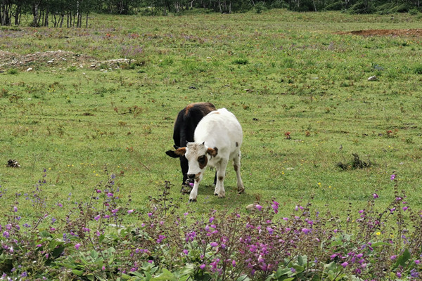 春天到来,悠闲的小牛约上自己的伙伴,自由自在的漫步在绿色的草地中寻找食物。(李学英/摄)
