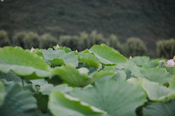 荷叶罗裙一色裁,芙蓉向脸两边开。